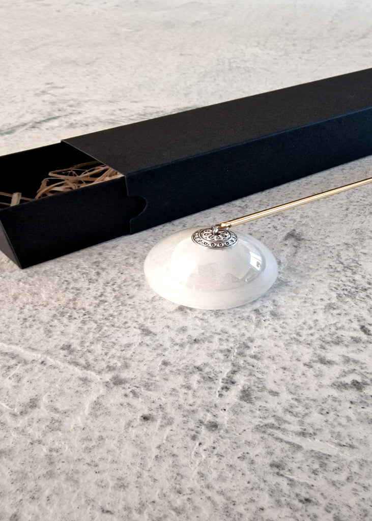 Pagal mūsų, lietuvių, protėvių įsitikinimą - žvakės ugnies gesinimas užpučiant - blogas ženklas. Užgesinant žvakę gesikliu - išvengsite galimų nemalonumų ir nemalonių užpūstos žvakės dūmų. Ypač patogus, patvarus ir praktiškas namų dekoro elementas. Gali būti plaunamas karštu vandeniu. Keramikinis burbuliukas padengtas tauriaisiais metalais - kas suteikia papildomą spindesį ir šiek tiek vaivorykštinį balto perlo atspalvį.